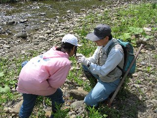さあ,今年もやってきました化石採集! 今年は低学年も意欲満々です。 博物館から3人の先生をお招きして, いつものサヌシュッペ川で化石とりです。