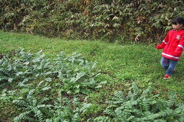 春まきの後,夏にとんだ種が秋に芽を出し花をつけまた広がり,それが今年の春に発芽,そしてそれが咲いて種をとばし,また発芽したのがこの野良桜島大根です。