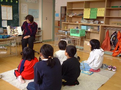 長いお話でみんな真剣にかぬかさんの話を聞いています。 |