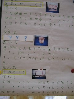 もべつばあちゃんの家で,昔の道具を探して,名前や使い方を調べました。 ・いとよりき ・あしぶみだっこくき ・いっとだる ・うねきりき ・いねかりき がありました。